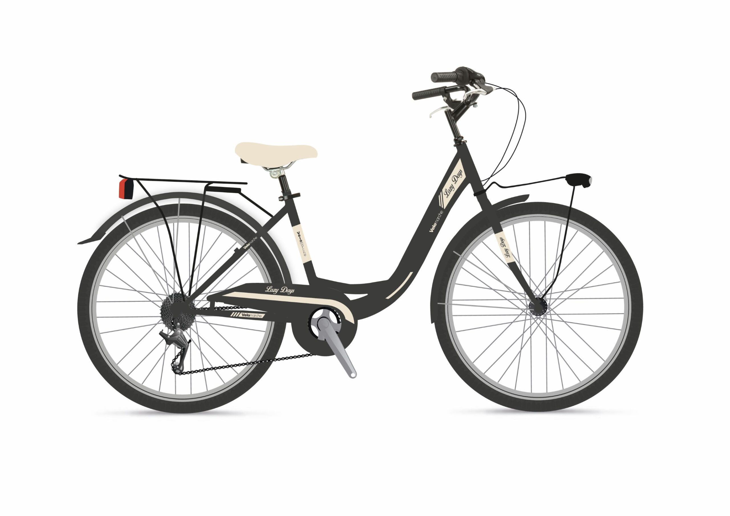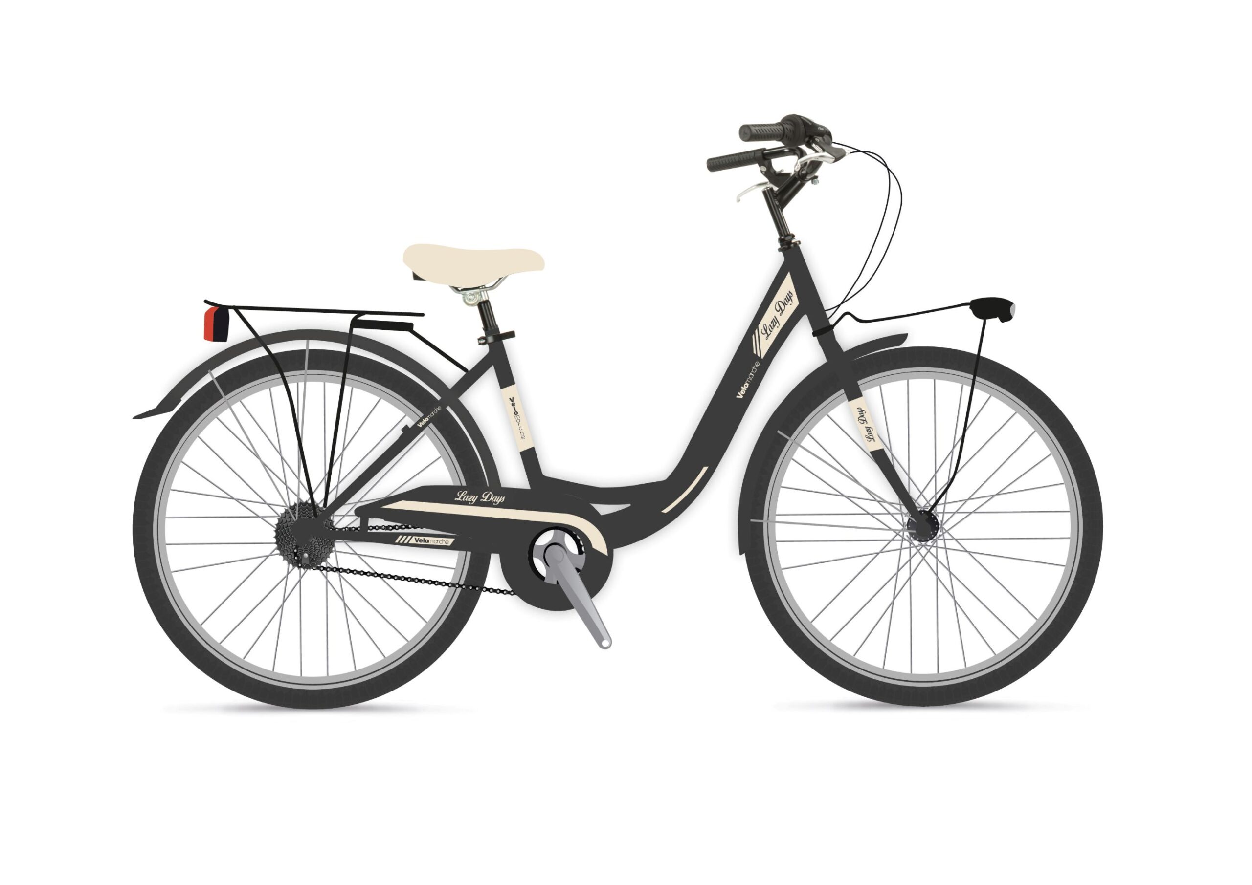 La Velomarche LAZY DAYS es una bicicleta de mujer sencilla y robusta gracias a su fabricación en mono tubo de acero de alta resistencia, con una caja de cambios de una sola velocidad que facilita su uso incluso para aquellas sin mucha experiencia. La bicicleta está equipada con frenos en V que garantizan una frenada eficaz y segura.